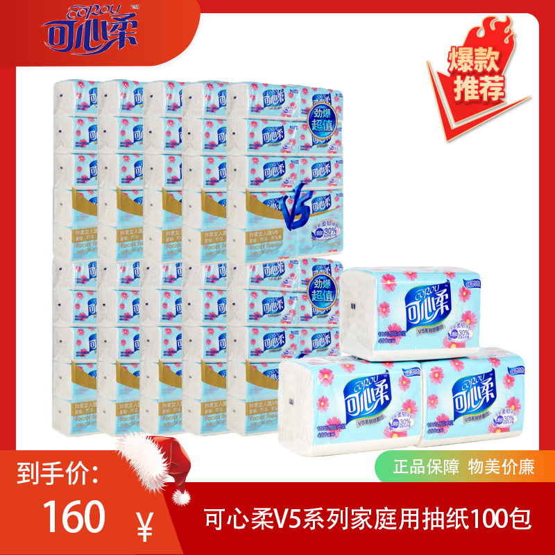 可心柔v5抽纸纸巾餐巾纸100包十提实惠装批整箱发餐饮商务家庭用热门设计联盟服务商