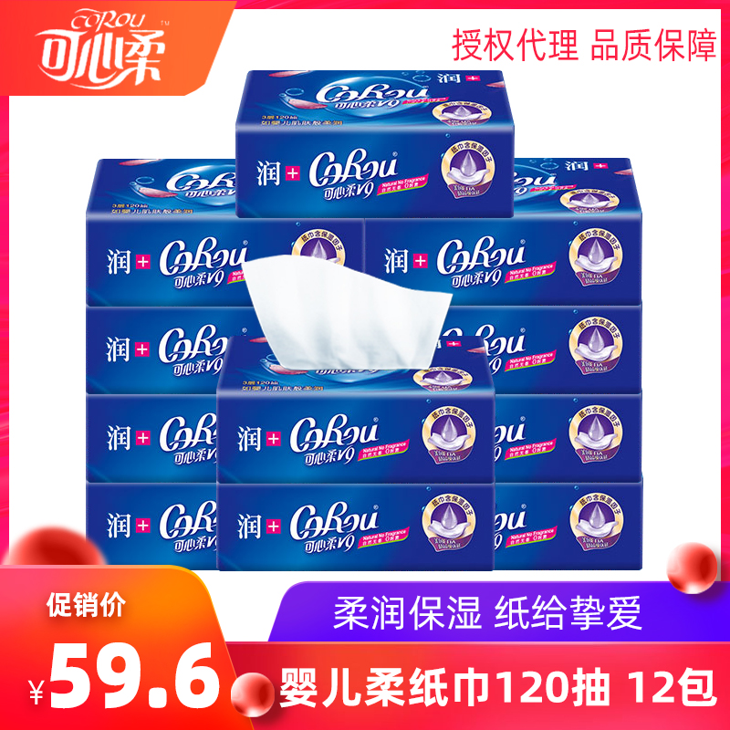 可心柔v9婴儿柔乳霜保湿纸巾新生儿宝宝专用面巾纸120抽*12包实惠热门设计联盟服务商