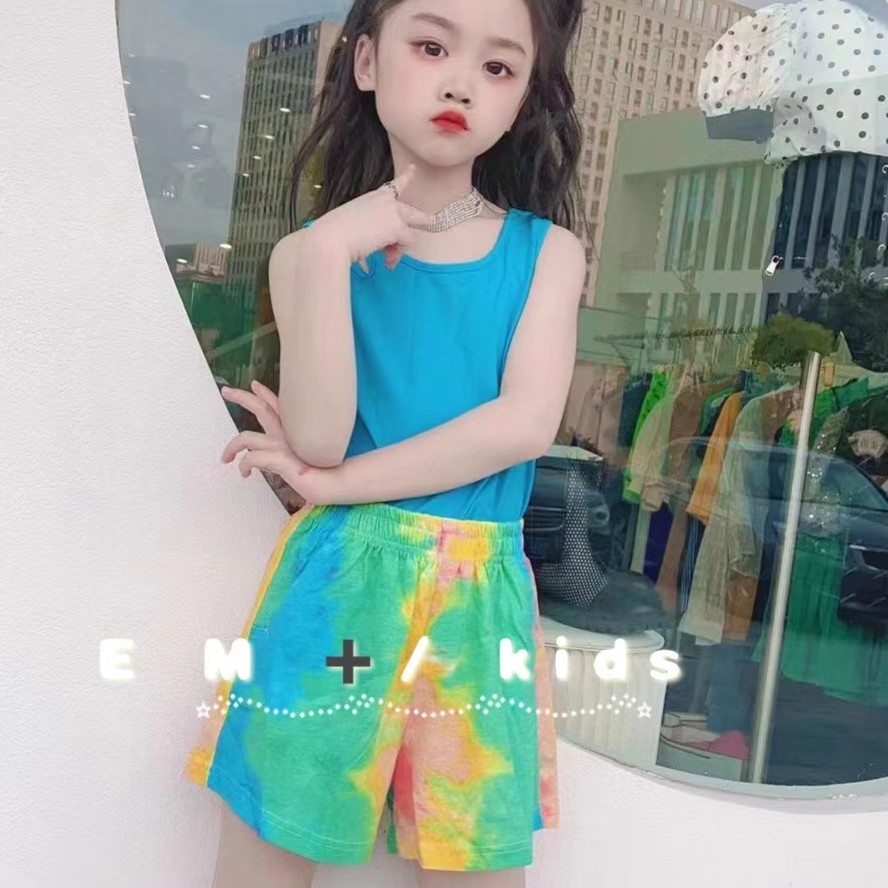 韩国童装21夏新品女孩纯棉短裤时尚彩色晕染设计中大童棉宽松裤子热门设计联盟服务商