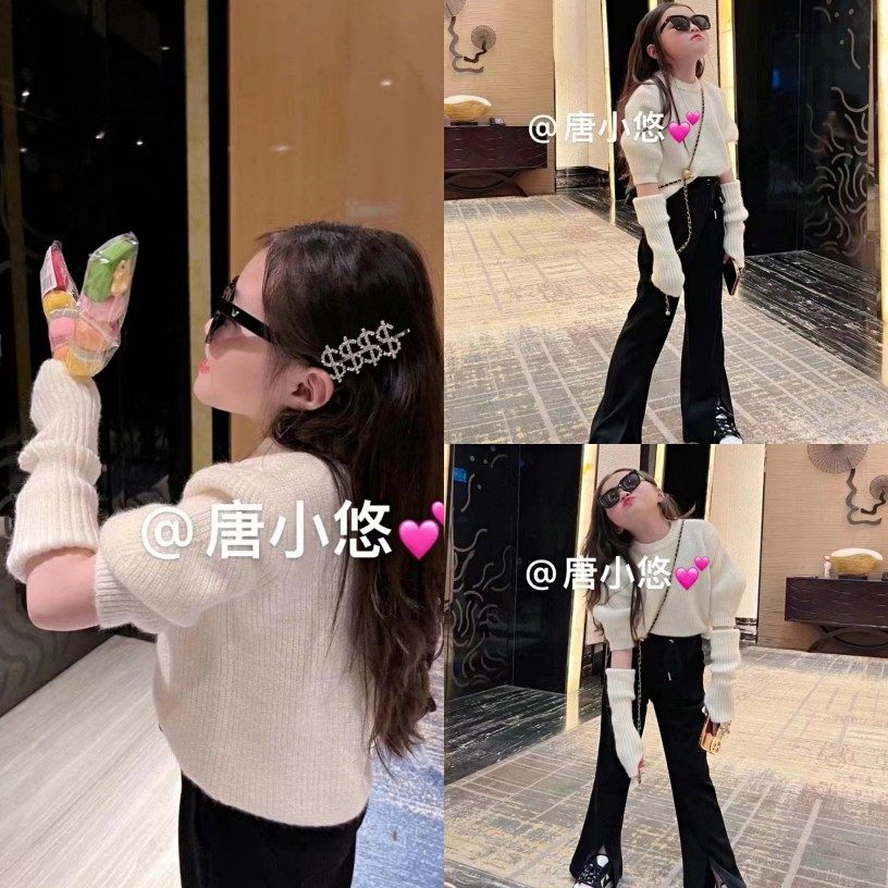 韩国童装22春新品女孩纯色毛衣时尚分袖设计中大童走秀个性洋气热门设计联盟服务商