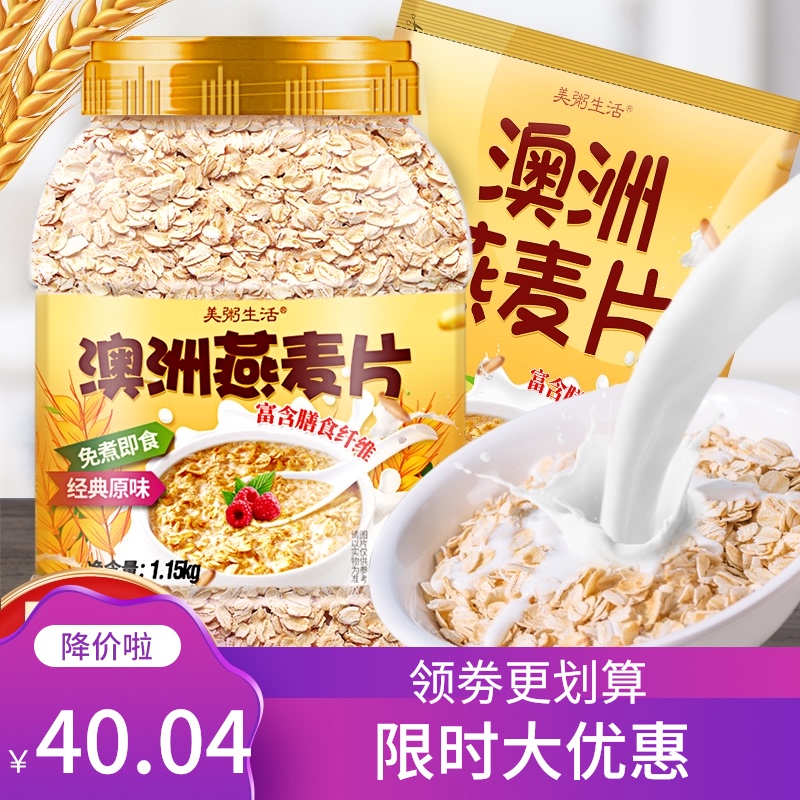 美粥生活燕麦片早餐即食冲饮麦片无蔗糖非脱脂纯麦片健身代餐冲泡热门设计联盟服务商