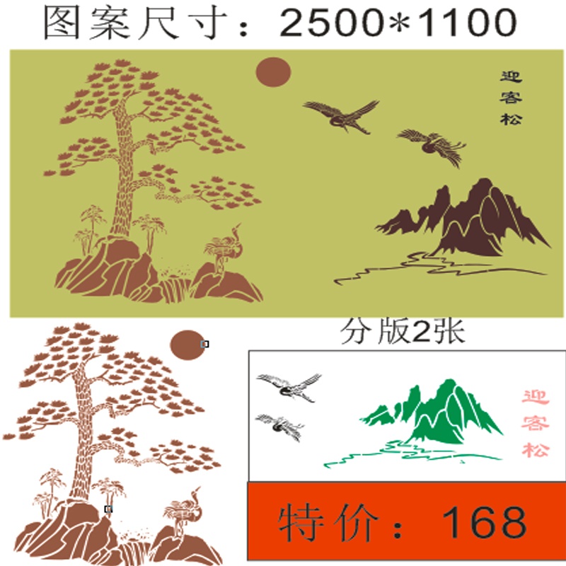 镂空喷漆模板室内外墙面印花迎客松墙艺施工模具八骏图案镂印定。热门设计联盟服务商