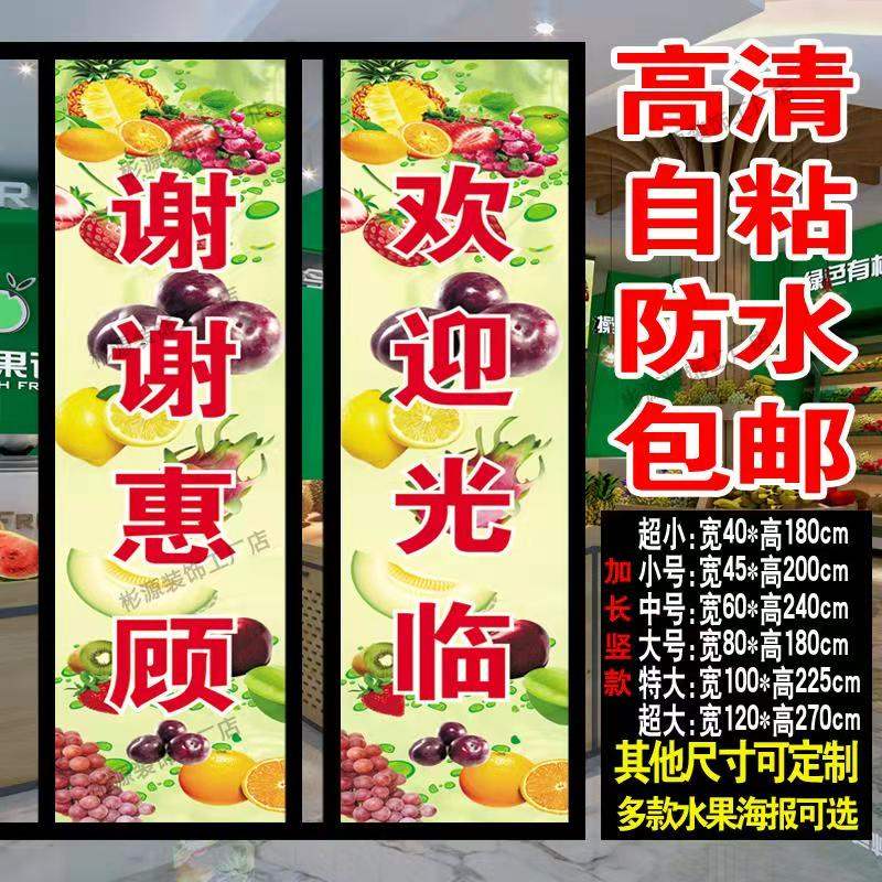 新品水果店装饰墙贴画海报定制大幅墙纸壁纸自粘门柱玻璃贴纸包。热门设计联盟服务商