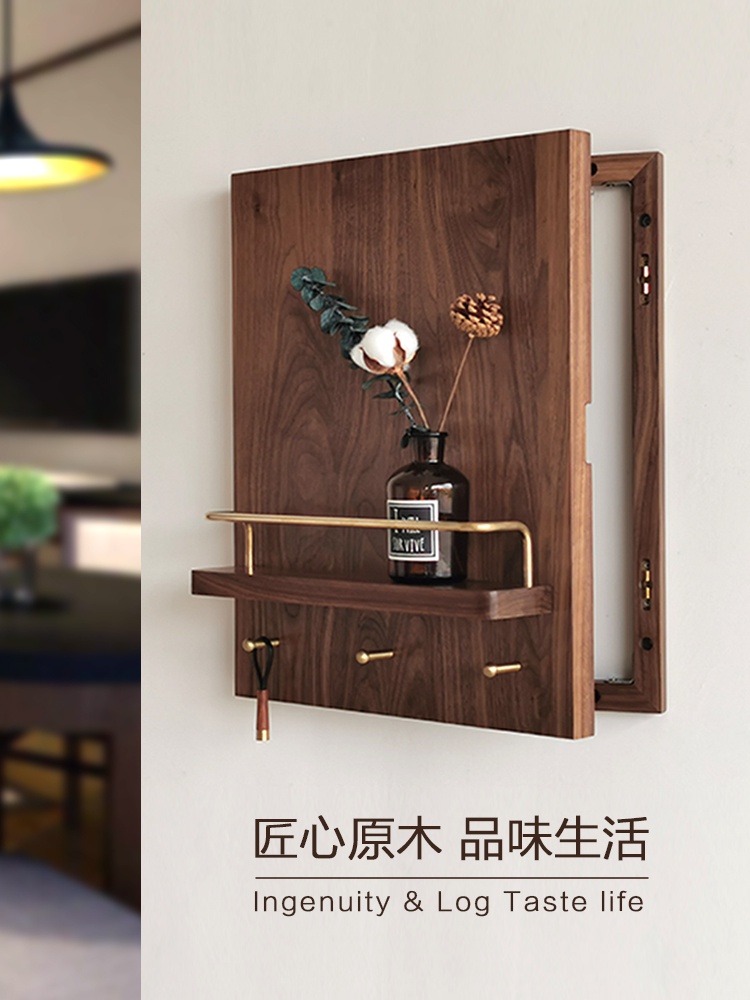 胡桃木电表箱遮挡箱挂衣架实木多功能电箱装饰置物架创意带挂钩热门设计联盟服务商