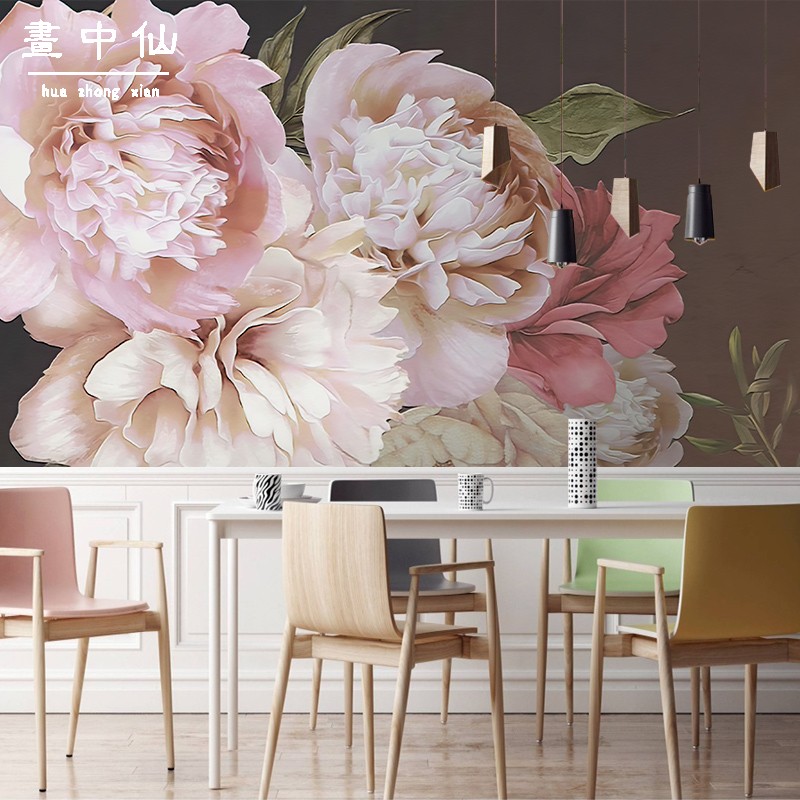 柔岚美式国花牡丹壁纸电视背景墙布卧室客厅影视墙壁画沙发房间3d热门设计联盟服务商