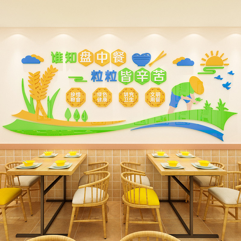 珍惜节约粮食3d立体墙贴亚克力学校餐厅饭店食堂标语文化墙面装。热门设计联盟服务商