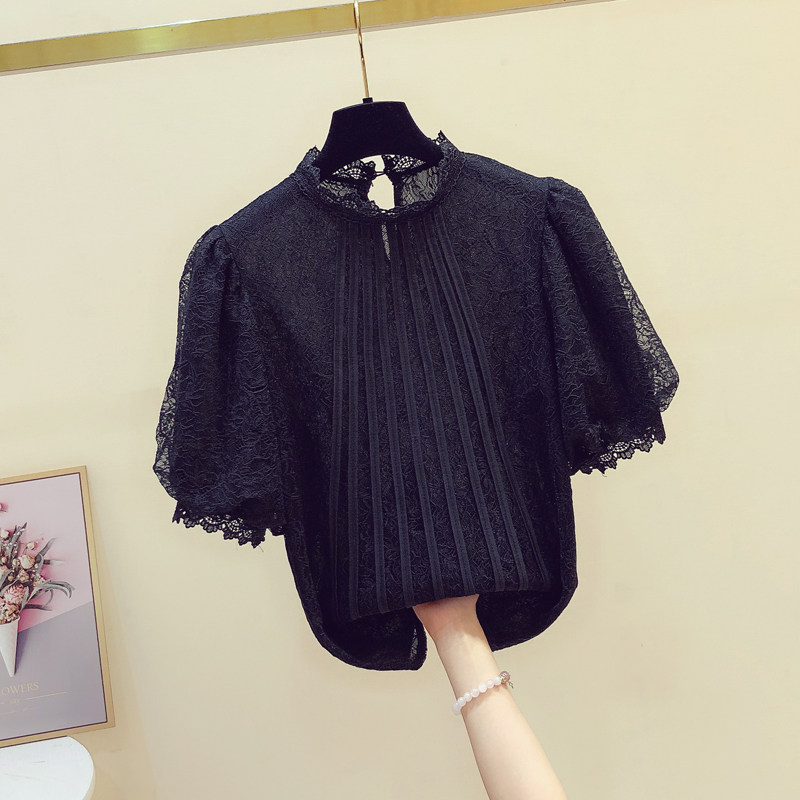 很夏设计感e立领蕾丝衫衬衫女短袖2021牌新款灯笼袖潮仙的衬衣上热门设计联盟服务商
