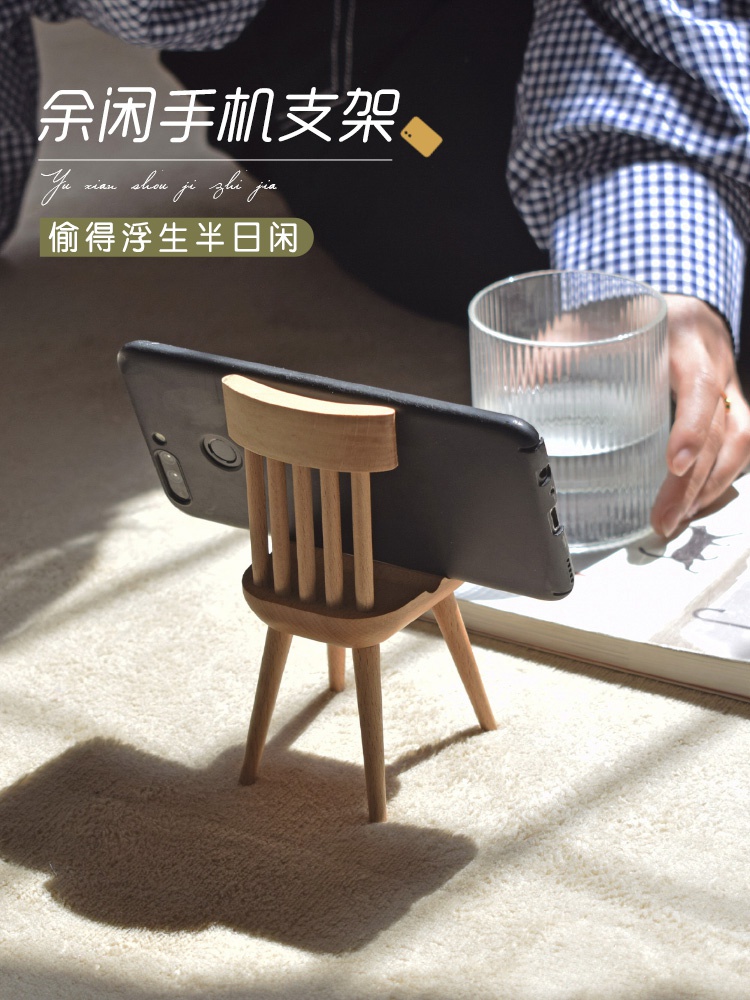 【KK精选】椅子手机支架实木可调节角度创意礼物桌面摆件底座。热门设计联盟服务商
