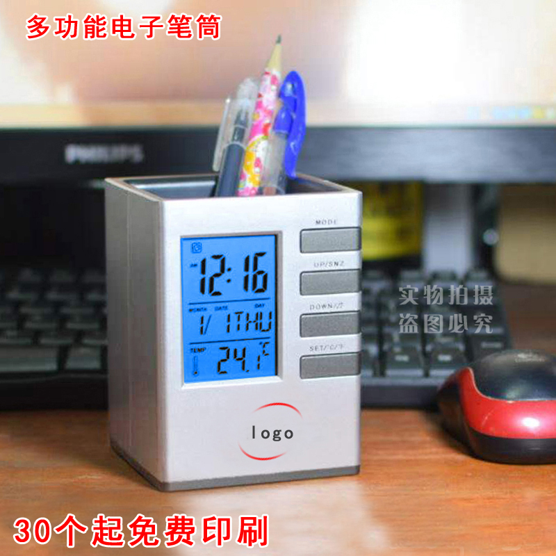 方形创意带背光办公桌面时钟企业定制印logo热门设计联盟服务商