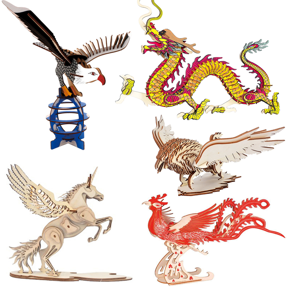 独角兽 狮鹫恐龙3D立体木质拼装玩具模型 创意礼品物儿童玩具热门设计联盟服务商