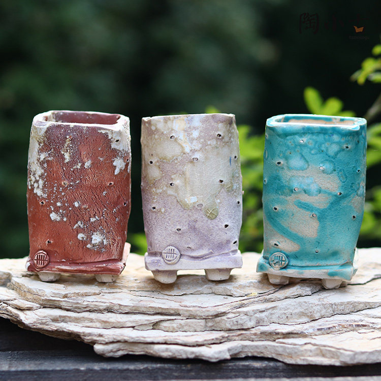 一卌设计方口小老桩盆高盆粗陶超透气多彩个性多肉花盆景德镇2021热门设计联盟服务商