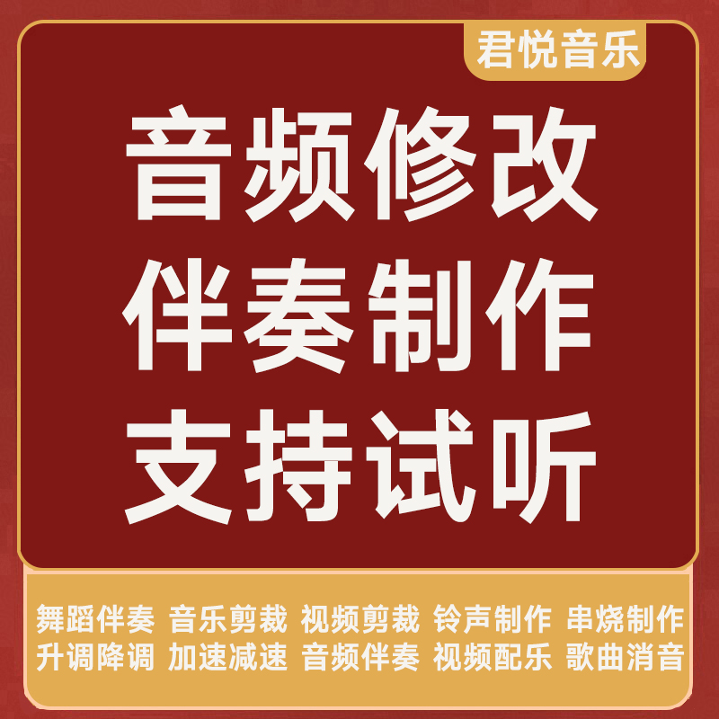 伴奏制作歌曲伴唱消人声加减速音乐升调降调剪辑修改混音串烧消音热门设计联盟服务商