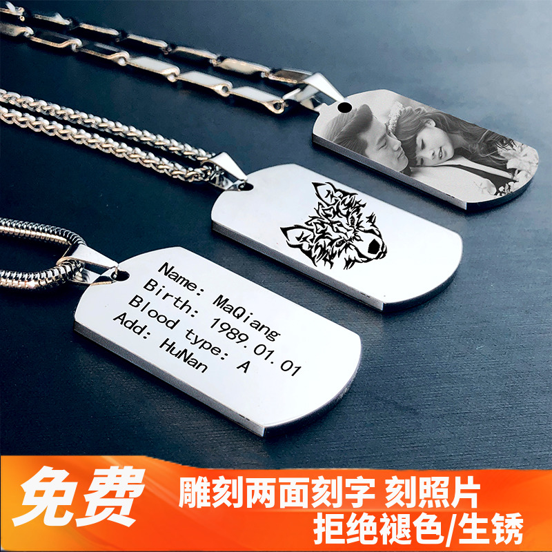 钛钢军牌项链潮男定制美国大兵牌吊坠狗牌个性不锈钢男士刻字照片热门设计联盟服务商